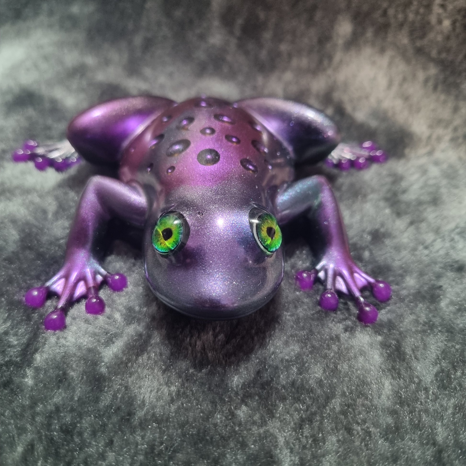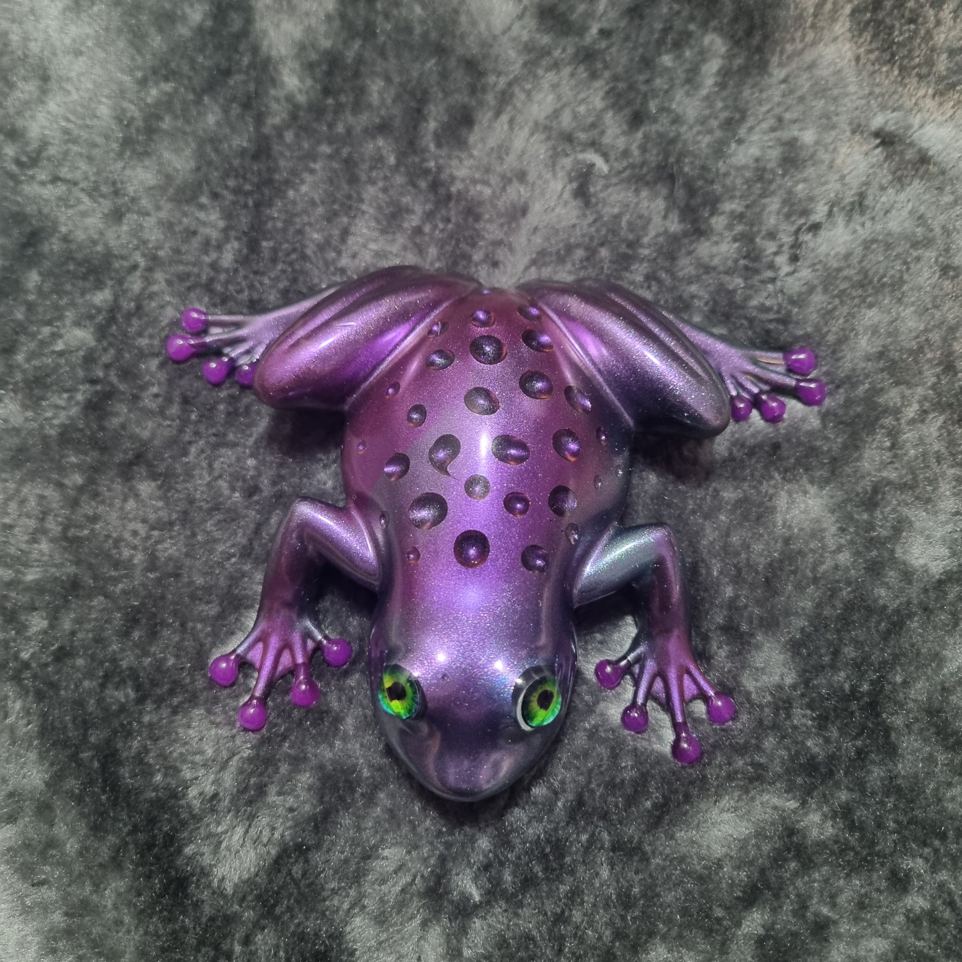 This chameleon raindrop frog features a smooth, glossy finish with a stunning raindrop effect on its back. With vibrant colours that shift in the light and striking green eyes, it’s perfect for a unique shelf buddy, desk pal, or gift for frog lovers!