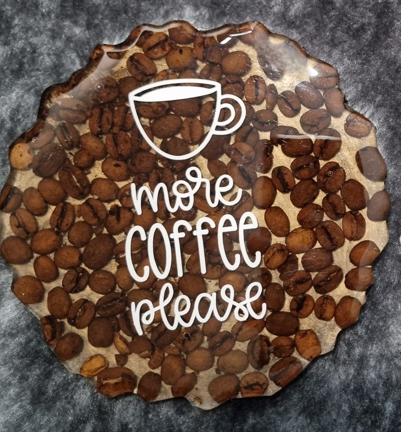Large Irregular "More Coffee Please" Coffee Bean Resin Coasters