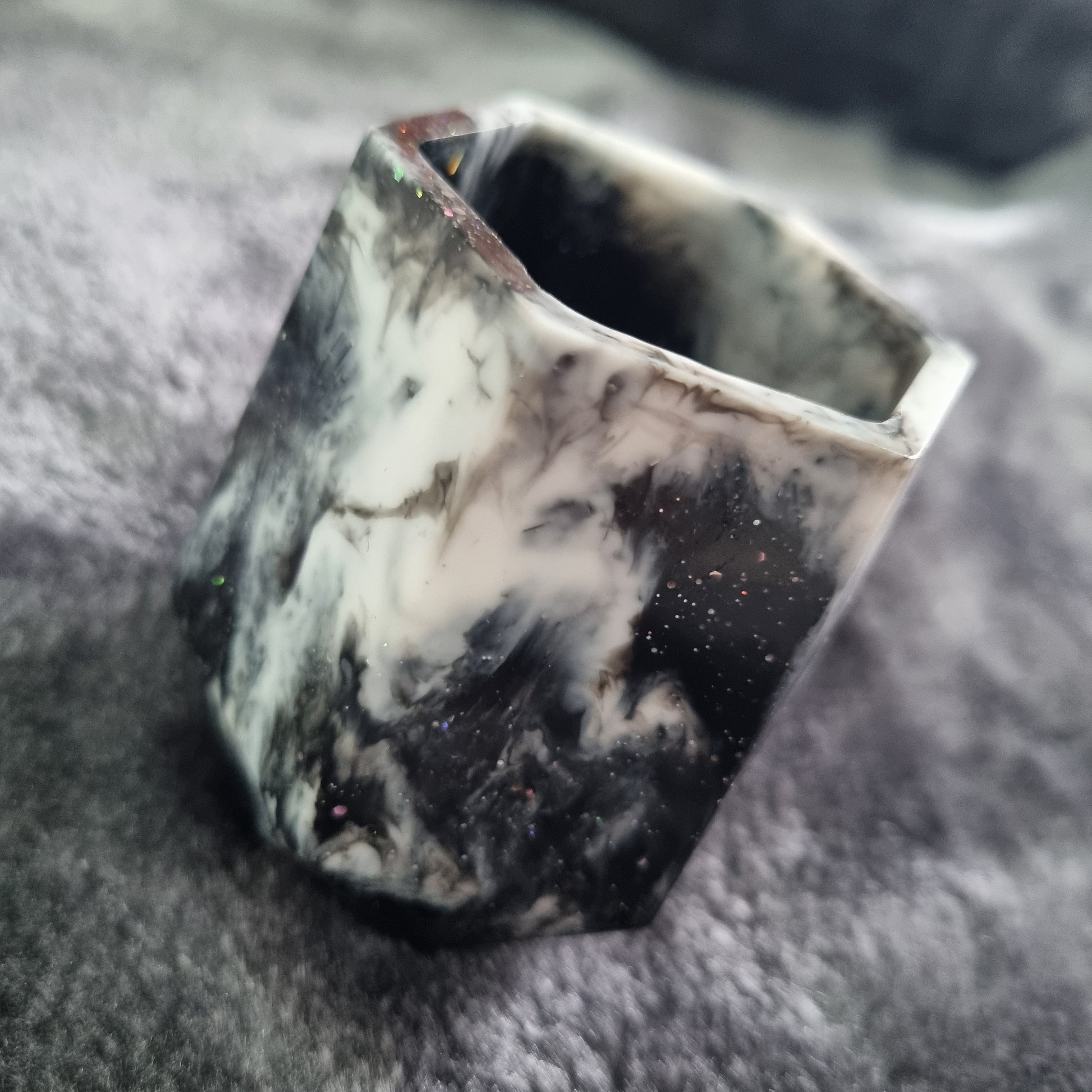 These handmade resin pen pots are perfect for storing pens, pencils, brushes, or even makeup tools. Each one is unique, with gorgeous colours and patterns that add a fun pop to your workspace. Practical, eye-catching, and a lovely gift idea.